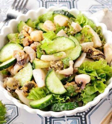 Описание приготовления: Полезное и безвредное для фигуры блюдо понравится всем любителям морепродуктов. Чаще всего морской коктейль продают в замороженном виде, но при этом он сохранят почти все свои питательные свойства. Я предлагаю отварить продукт, но вы можете поджарить морской коктейль на сковороде, придав салату новый и интересный вкус. Для заправки подойдёт не только оливковое масло, […]