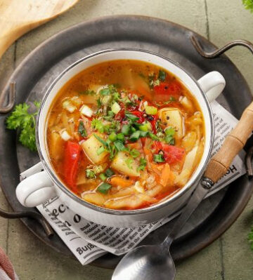 Описание приготовления: Ниже я расскажу подробнее, как приготовить капустный суп. Если хотите сделать суп сытнее, то можно добавить консервированную фасоль или нут. Из овощей также можно добавить помидоры или томатную пасту. Рецепт подойдет для постного меню или тех, кто придерживается диеты. Подавать капустный суп можно со сметаной и мелко нарезанной свежей зеленью. Назначение: На обед […]
