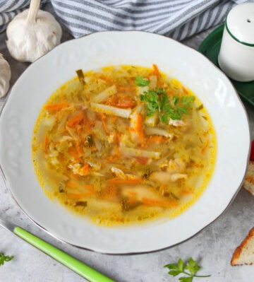 Описание приготовления: Ниже я расскажу подробнее, как приготовить капустный суп. Если хотите сделать суп сытнее, то можно добавить консервированную фасоль или нут. Из овощей также можно добавить помидоры или томатную пасту. Рецепт подойдет для постного меню или тех, кто придерживается диеты. Подавать капустный суп можно со сметаной и мелко нарезанной свежей зеленью. Назначение: На обед […]