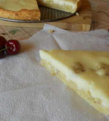 Ингредиенты Мука 200 г Масло сливочное 100 г Бананы 2 шт. Яйца 1 шт. Сахар 1 ст.л. Разрыхлитель 1 ч.л. для заливки: Сметана 200 г Сахар 100 г Яйца 1 шт. Мука 2 ст.л. Кухня: Домашняя кухня Пошаговое приготовление: Взбить сахар и яйца, добавить масло и муку с разрыхлителем, перемешать до получения однородного теста. Бананы […]