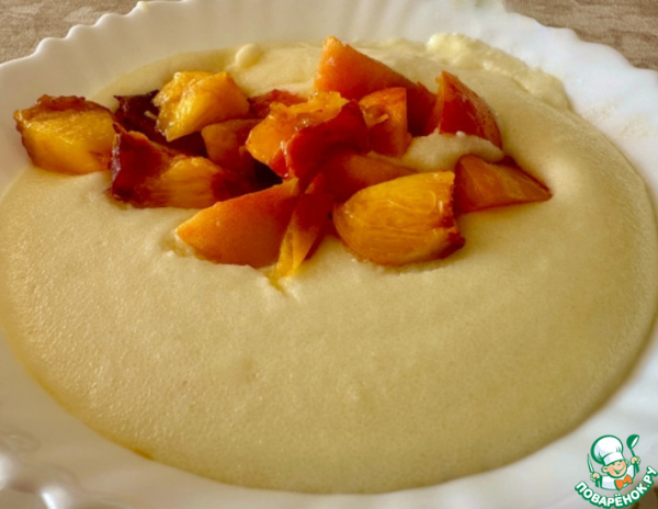 Нужно добиться, чтобы образовалась такая равномерная, манно-молочная смесь. Она должна получиться примерно, как сметана. Подчеркну! И чтобы не единого комочка!
