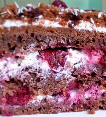 Торт очень простой в приготовлении, с кислинкой, нежными шоколадными коржами и вкусным кремом. Приготовление 1 час 20 минут Ингредиенты порций: Яйца куриные 2 шт. Кефир 250 мл Мука пшеничная 300 г Сахар 200 г Масло сливочное 80 г Какао-порошок 40-60 г Сахар ванильный 1 пачка Разрыхлитель 1.5 ч.л. Крем Сметана 20% 200 г Сливки 33% […]