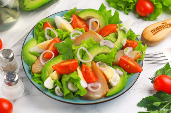 Подайте салат с копченой треской и авокадо к столу сразу же после его приготовления. Если готовите его заранее, то сбрызните лимонным соком, чтобы авокадо не потемнел. Приятного вам аппетита!
