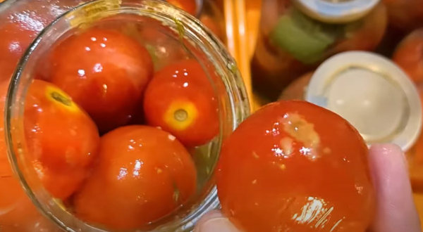 Тщательно промываем помидоры. Доводим рассол до кипения и вливаем обратно в банки, оставляем под прикрытыми крышками на 30 минут.