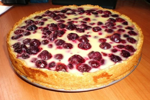 - В разъемную форму выложить тесто, аккуратно, сделав высокие бортики, чтобы не вытекла начинка. Выложить ягоды и налить сверху заливку. Пирог выпекать 35 минут, затем остыть. Готовый заливной пирог с ягодами подать к столу и кушать с любимыми напитками.
