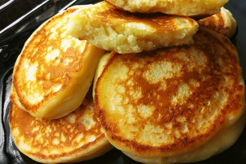 - Раскалить сковороду и налить 2 ложки растительного масла. Ложкой выкладывать творожные оладьи на сметане на сковороду и жарить с двух сторон под накрытой крышкой. Вкус оладушек можно разнообразить добавлением в тесто сухофруктов, орехов или свежих ягод