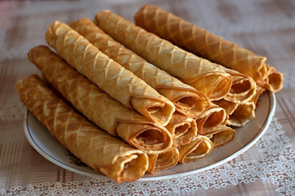 Традиционные вафельные трубочки, хорошо знакомые еще с советских времен. Простая и вкусная выпечка к любому торжеству.