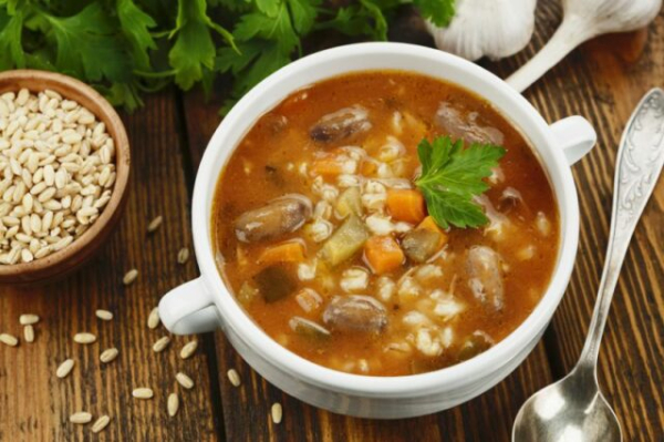В заготовку рассольника помимо стандартного набора овощей можно добавить молодые кабачки, заменив ими огурцы. Этот ингредиент позволит придать похлебке особую вкусовую нотку и сделать ее питательнее.